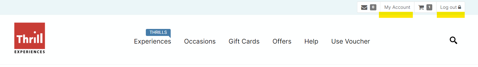 How do I sign in and out of My Account? To Sign In Select 'My Account' at the top of the Thrill Experiences website. You are directed to the log in page where you enter your email and password. To Sign Out Select Log Out at the top of the Thrill Experiences website
